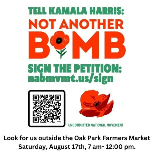 Cosponsors: American Friends Service Committee; Chicago Educators for Palestine; Chicago Faith Coalition for Middle East Peace; HUB Collective; IfNotNow, Chicago; Jewish Voice for Peace, Chicago; Oak Park Neighbors for Justice and Peace in Palestine and Israel; Tzedek Chicago